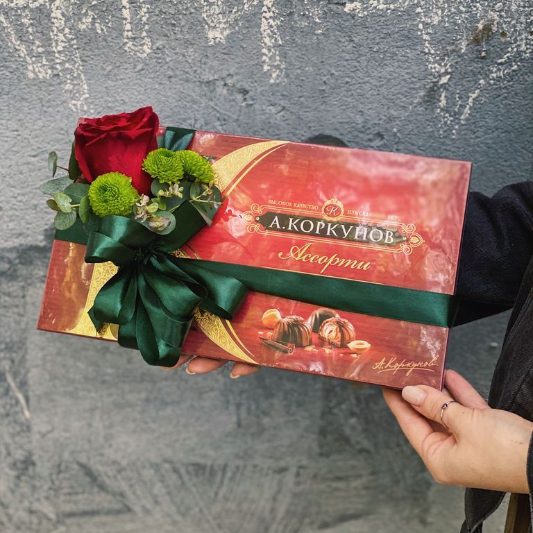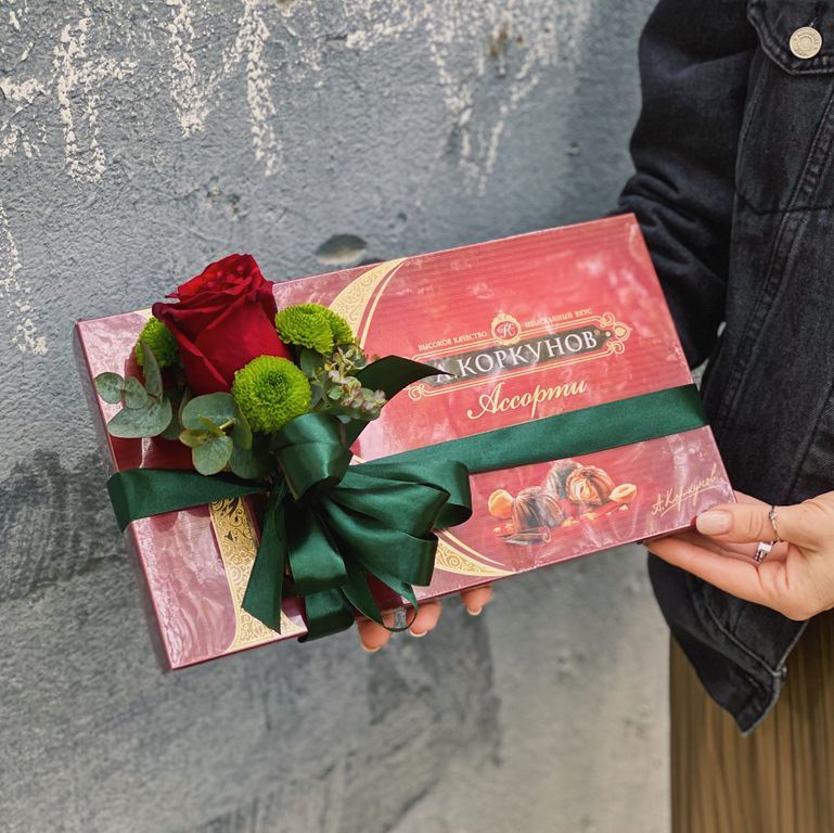 Коробка конфет с бутоньеркой