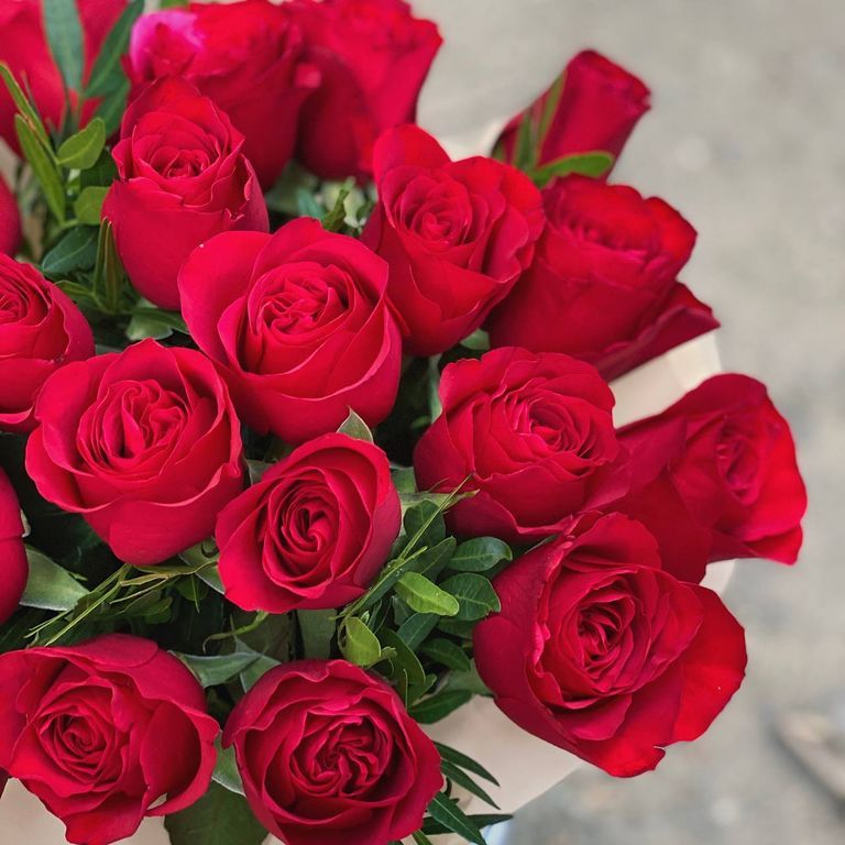Шляпная коробка из 21 красной розы